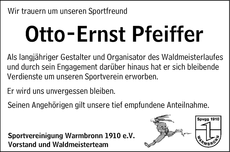 Hier finden Sie alle Traueranzeigen aus der Zeitung, die bisher für Otto-Ernst Pfeiffer erschienen sind. Weitere Traueranzeigen, die in der Zeitung erscheinen, werden hier ebenfalls aufgelistet