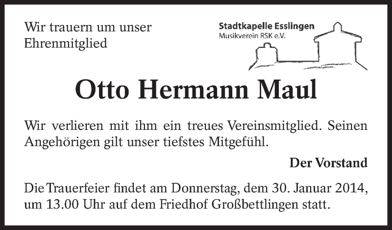 Hier finden Sie alle Traueranzeigen aus der Zeitung, die bisher für Otto Hermann Maul erschienen sind. Weitere Traueranzeigen, die in der Zeitung erscheinen, werden hier ebenfalls aufgelistet