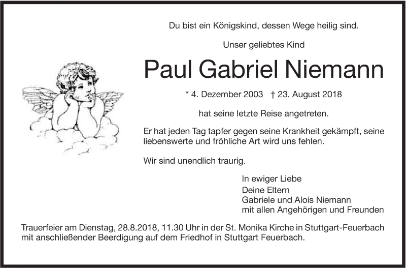 Hier finden Sie alle Traueranzeigen aus der Zeitung, die bisher für Paul Gabriel Niemann erschienen sind. Weitere Traueranzeigen, die in der Zeitung erscheinen, werden hier ebenfalls aufgelistet