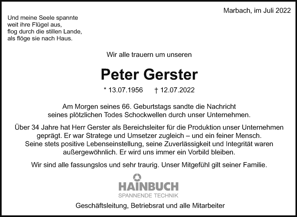 Hier finden Sie alle Traueranzeigen aus der Zeitung, die bisher für Peter Gerster erschienen sind. Weitere Traueranzeigen, die in der Zeitung erscheinen, werden hier ebenfalls aufgelistet