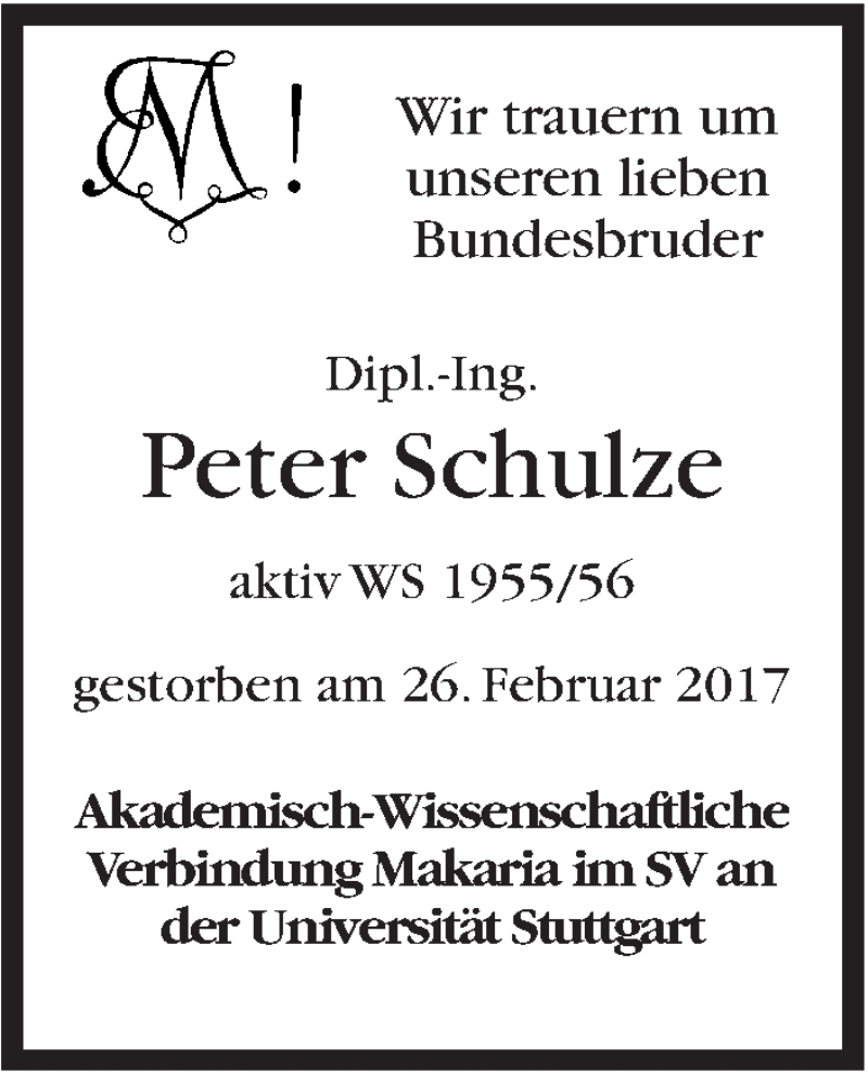 Hier finden Sie alle Traueranzeigen aus der Zeitung, die bisher für Peter Schulze erschienen sind. Weitere Traueranzeigen, die in der Zeitung erscheinen, werden hier ebenfalls aufgelistet