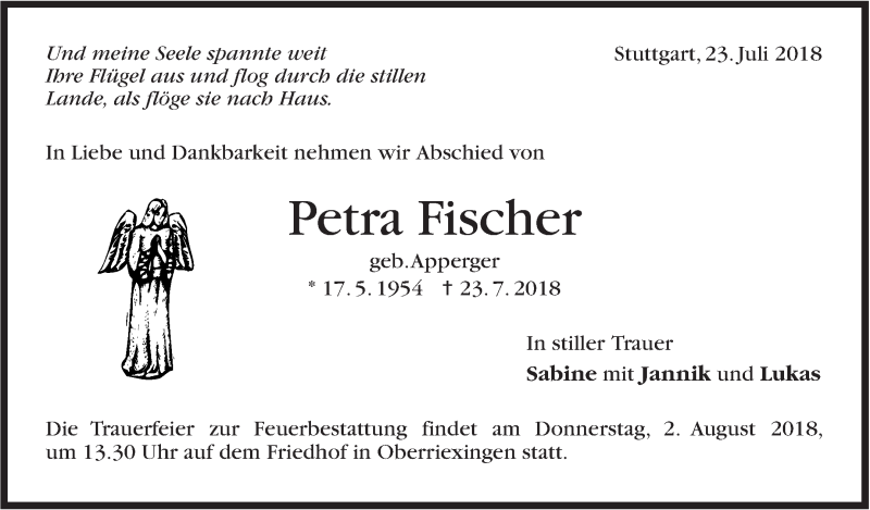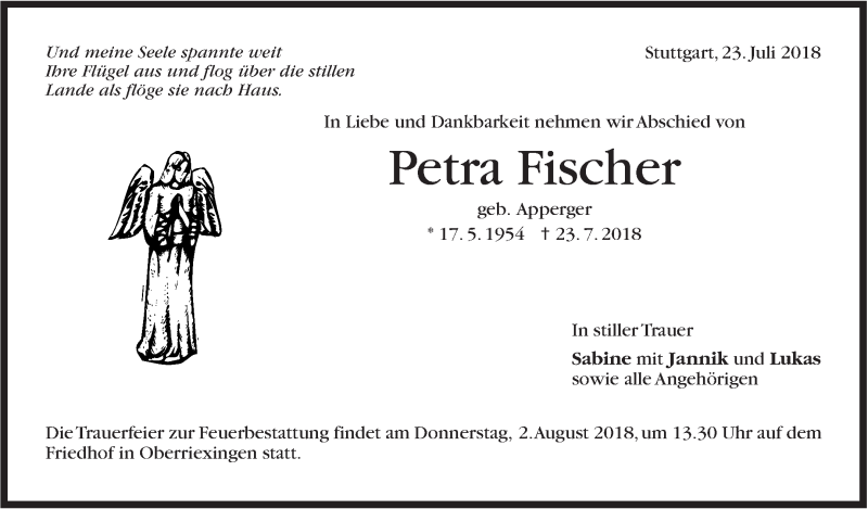 Hier finden Sie alle Traueranzeigen aus der Zeitung, die bisher für Petra Fischer erschienen sind. Weitere Traueranzeigen, die in der Zeitung erscheinen, werden hier ebenfalls aufgelistet