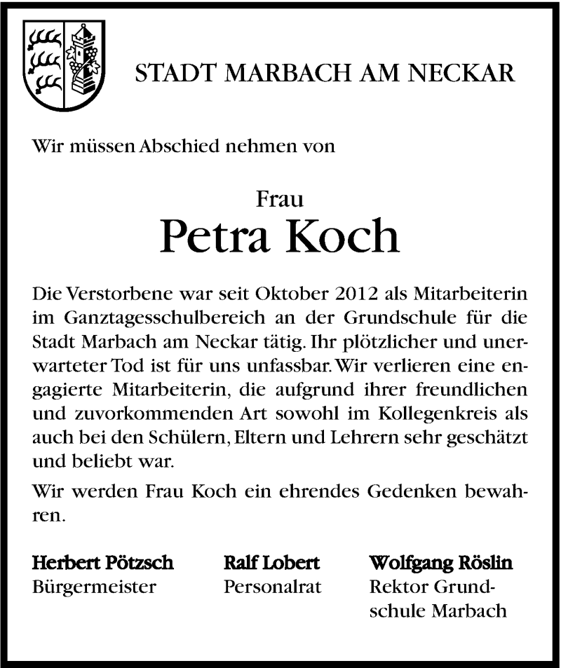 Hier finden Sie alle Traueranzeigen aus der Zeitung, die bisher für Petra Koch erschienen sind. Weitere Traueranzeigen, die in der Zeitung erscheinen, werden hier ebenfalls aufgelistet