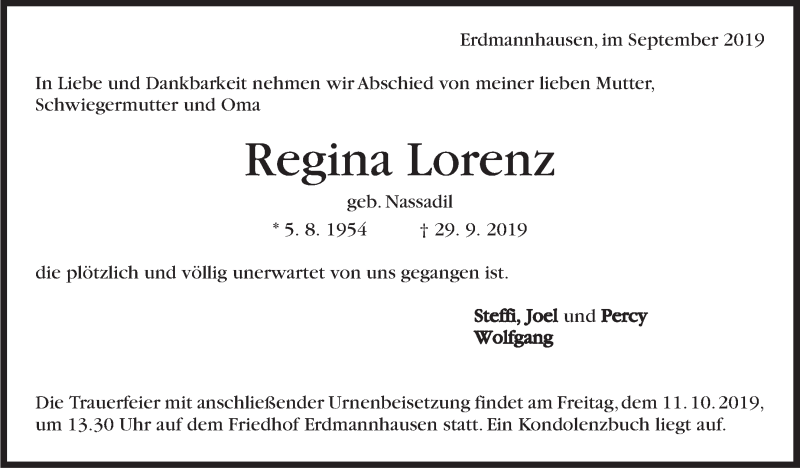 Hier finden Sie alle Traueranzeigen aus der Zeitung, die bisher für Regina Lorenz erschienen sind. Weitere Traueranzeigen, die in der Zeitung erscheinen, werden hier ebenfalls aufgelistet