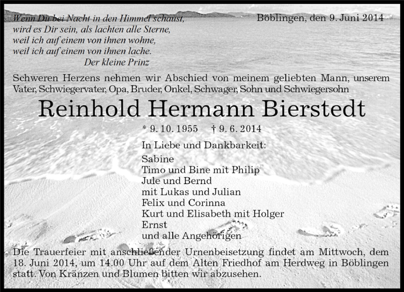 Hier finden Sie alle Traueranzeigen aus der Zeitung, die bisher für Reinhold Hermann Bierstedt erschienen sind. Weitere Traueranzeigen, die in der Zeitung erscheinen, werden hier ebenfalls aufgelistet
