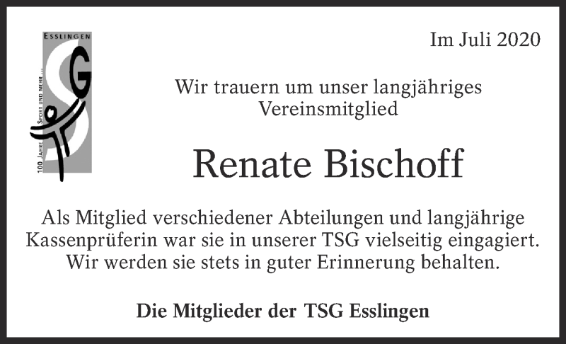 Hier finden Sie alle Traueranzeigen aus der Zeitung, die bisher für Renate Bischoff erschienen sind. Weitere Traueranzeigen, die in der Zeitung erscheinen, werden hier ebenfalls aufgelistet