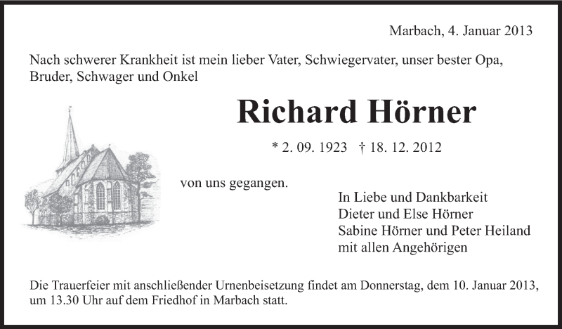 Hier finden Sie alle Traueranzeigen aus der Zeitung, die bisher für Richard Hörner erschienen sind. Weitere Traueranzeigen, die in der Zeitung erscheinen, werden hier ebenfalls aufgelistet
