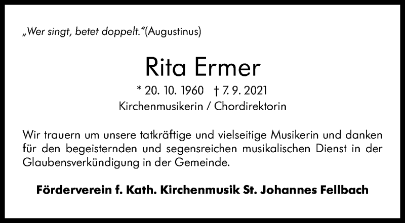 Hier finden Sie alle Traueranzeigen aus der Zeitung, die bisher für Rita Ermer erschienen sind. Weitere Traueranzeigen, die in der Zeitung erscheinen, werden hier ebenfalls aufgelistet