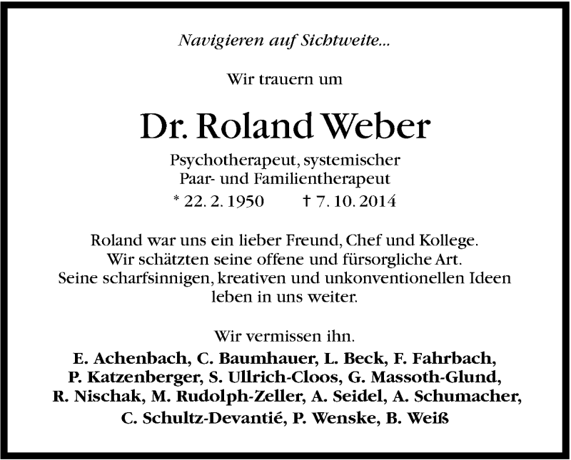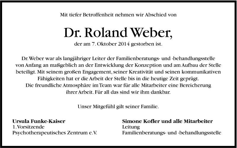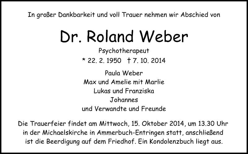 Hier finden Sie alle Traueranzeigen aus der Zeitung, die bisher für Roland Weber erschienen sind. Weitere Traueranzeigen, die in der Zeitung erscheinen, werden hier ebenfalls aufgelistet