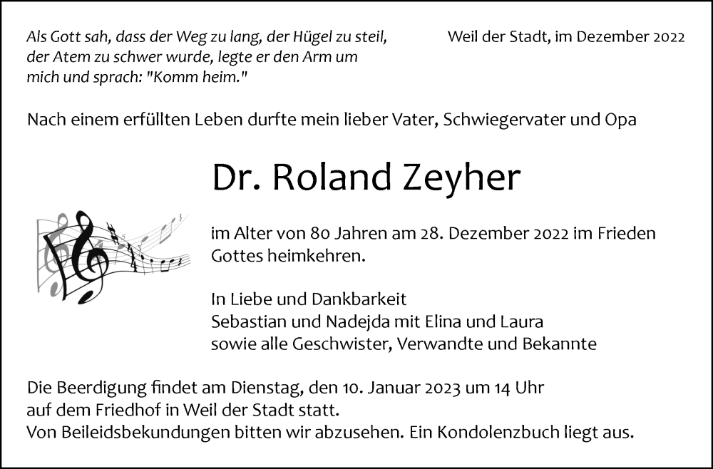 Hier finden Sie alle Traueranzeigen aus der Zeitung, die bisher für Roland Zeyher erschienen sind. Weitere Traueranzeigen, die in der Zeitung erscheinen, werden hier ebenfalls aufgelistet