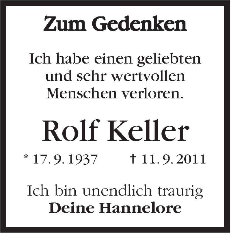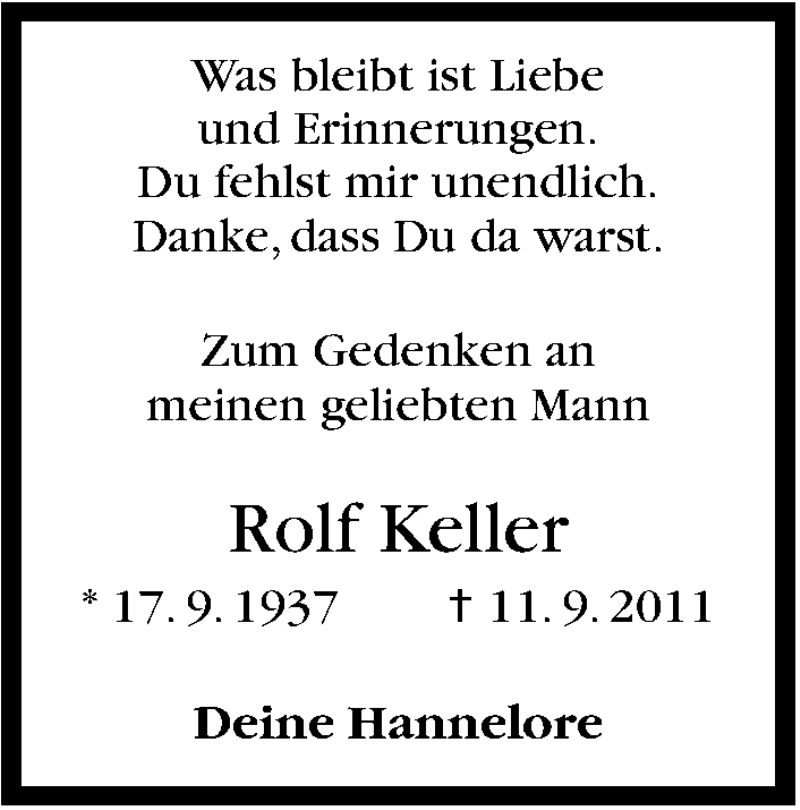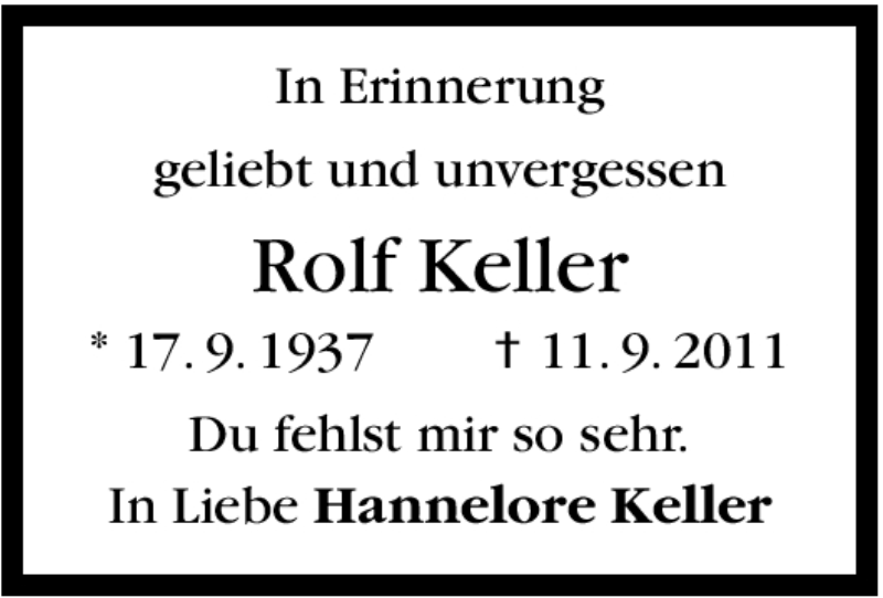Hier finden Sie alle Traueranzeigen aus der Zeitung, die bisher für Rolf Keller erschienen sind. Weitere Traueranzeigen, die in der Zeitung erscheinen, werden hier ebenfalls aufgelistet