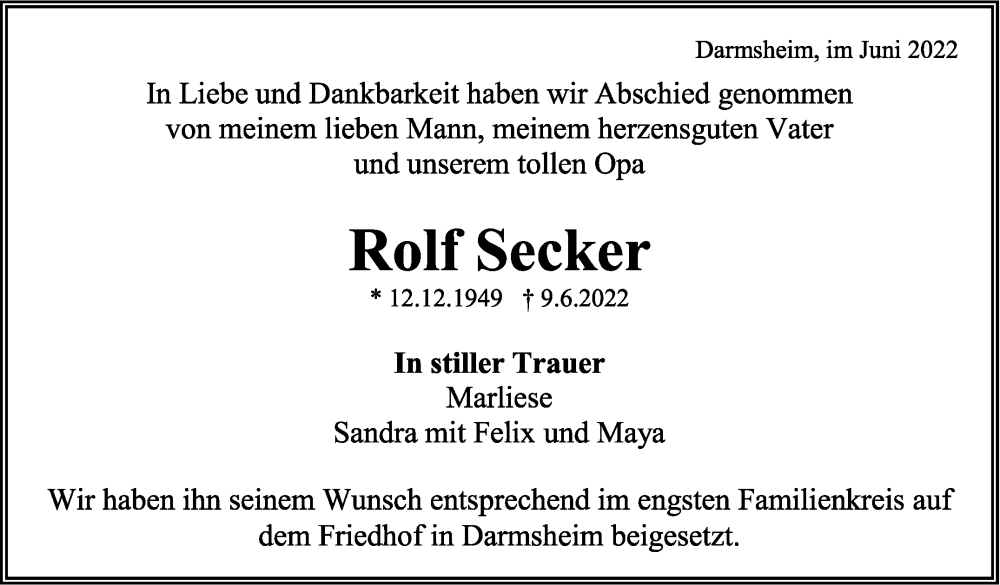 Hier finden Sie alle Traueranzeigen aus der Zeitung, die bisher für Rolf Secker erschienen sind. Weitere Traueranzeigen, die in der Zeitung erscheinen, werden hier ebenfalls aufgelistet