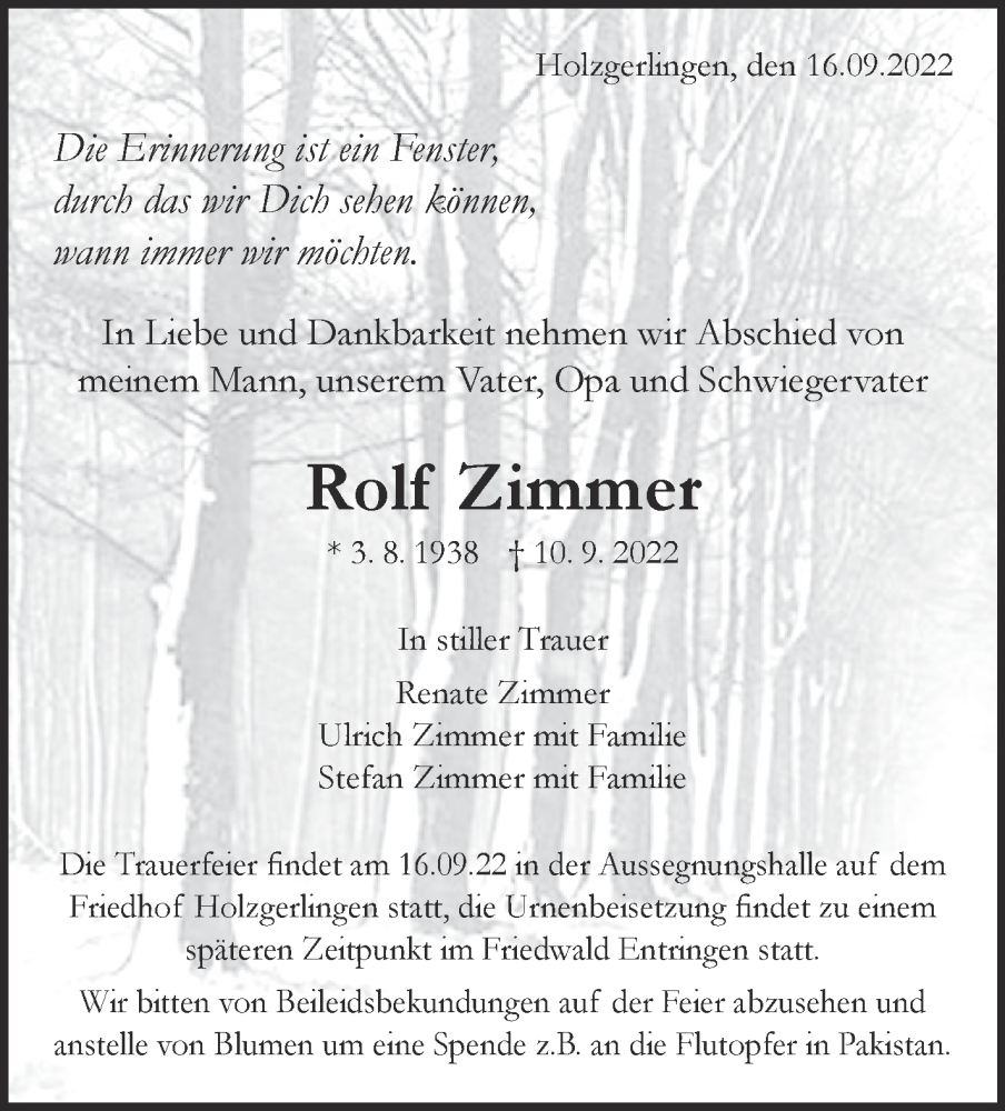 Hier finden Sie alle Traueranzeigen aus der Zeitung, die bisher für Rolf Zimmer erschienen sind. Weitere Traueranzeigen, die in der Zeitung erscheinen, werden hier ebenfalls aufgelistet