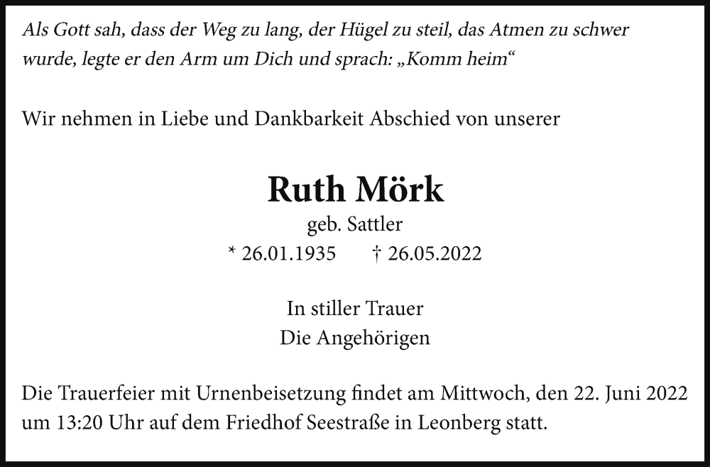 Hier finden Sie alle Traueranzeigen aus der Zeitung, die bisher für Ruth Mörk erschienen sind. Weitere Traueranzeigen, die in der Zeitung erscheinen, werden hier ebenfalls aufgelistet