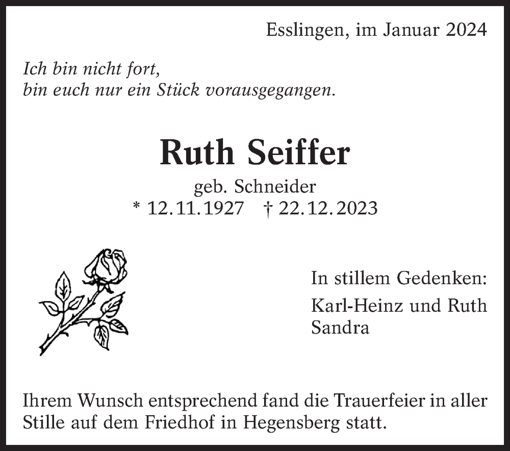 Hier finden Sie alle Traueranzeigen aus der Zeitung, die bisher für Ruth Seiffer erschienen sind. Weitere Traueranzeigen, die in der Zeitung erscheinen, werden hier ebenfalls aufgelistet