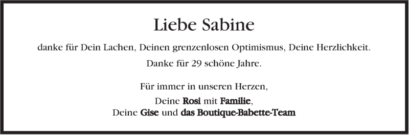 Hier finden Sie alle Traueranzeigen aus der Zeitung, die bisher für Sabine Häußermann erschienen sind. Weitere Traueranzeigen, die in der Zeitung erscheinen, werden hier ebenfalls aufgelistet