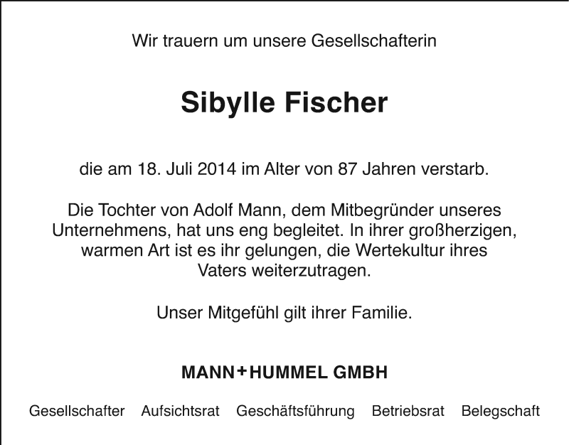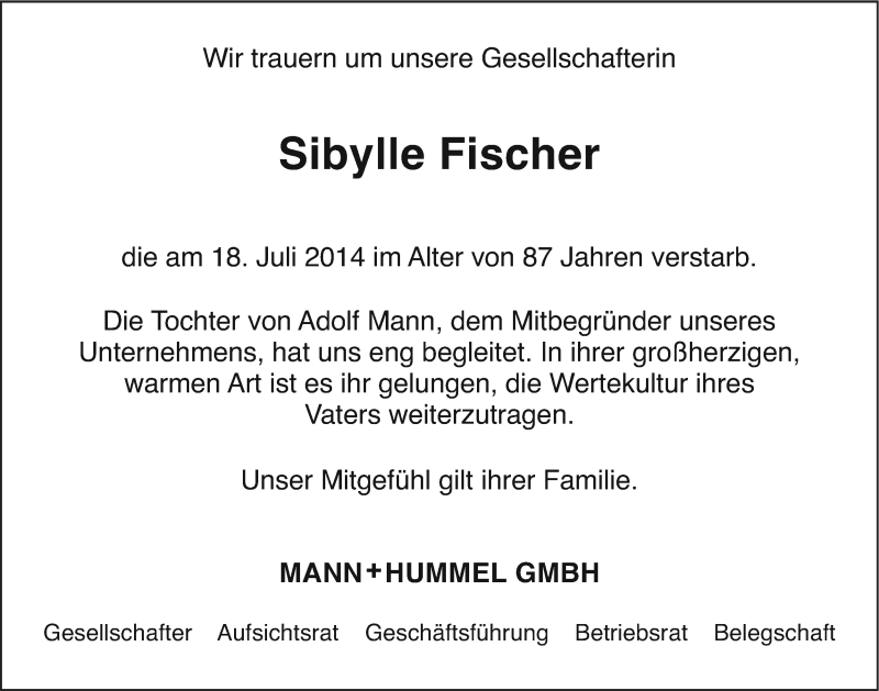 Hier finden Sie alle Traueranzeigen aus der Zeitung, die bisher für Sibylle Fischer erschienen sind. Weitere Traueranzeigen, die in der Zeitung erscheinen, werden hier ebenfalls aufgelistet