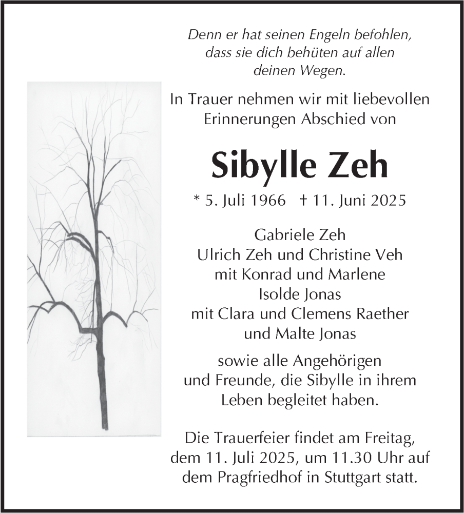 Hier finden Sie alle Traueranzeigen aus der Zeitung, die bisher für Sibylle Zeh erschienen sind. Weitere Traueranzeigen, die in der Zeitung erscheinen, werden hier ebenfalls aufgelistet