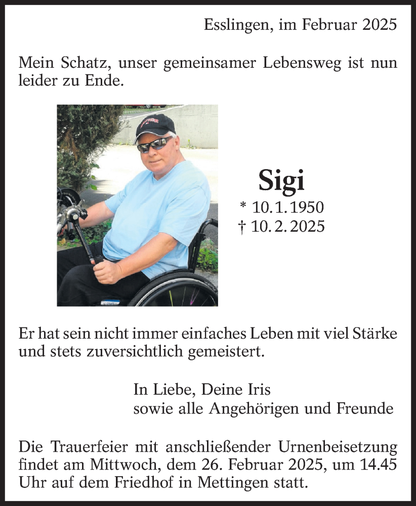 Hier finden Sie alle Traueranzeigen aus der Zeitung, die bisher für Sigi erschienen sind. Weitere Traueranzeigen, die in der Zeitung erscheinen, werden hier ebenfalls aufgelistet