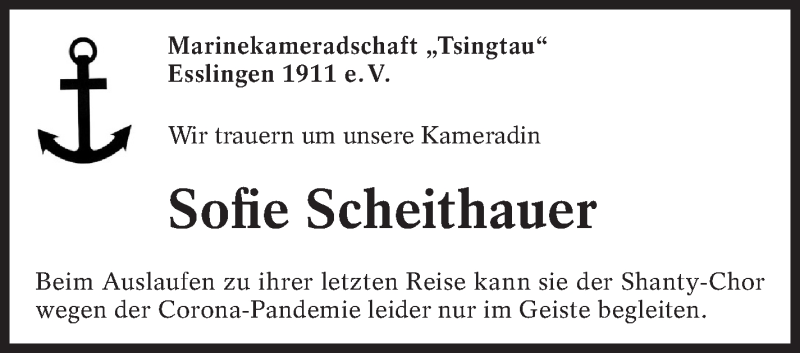 Hier finden Sie alle Traueranzeigen aus der Zeitung, die bisher für Sofie Scheithauer erschienen sind. Weitere Traueranzeigen, die in der Zeitung erscheinen, werden hier ebenfalls aufgelistet