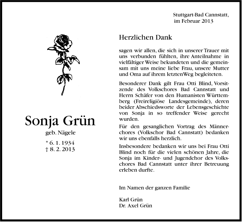 Hier finden Sie alle Traueranzeigen aus der Zeitung, die bisher für Sonja Grün erschienen sind. Weitere Traueranzeigen, die in der Zeitung erscheinen, werden hier ebenfalls aufgelistet