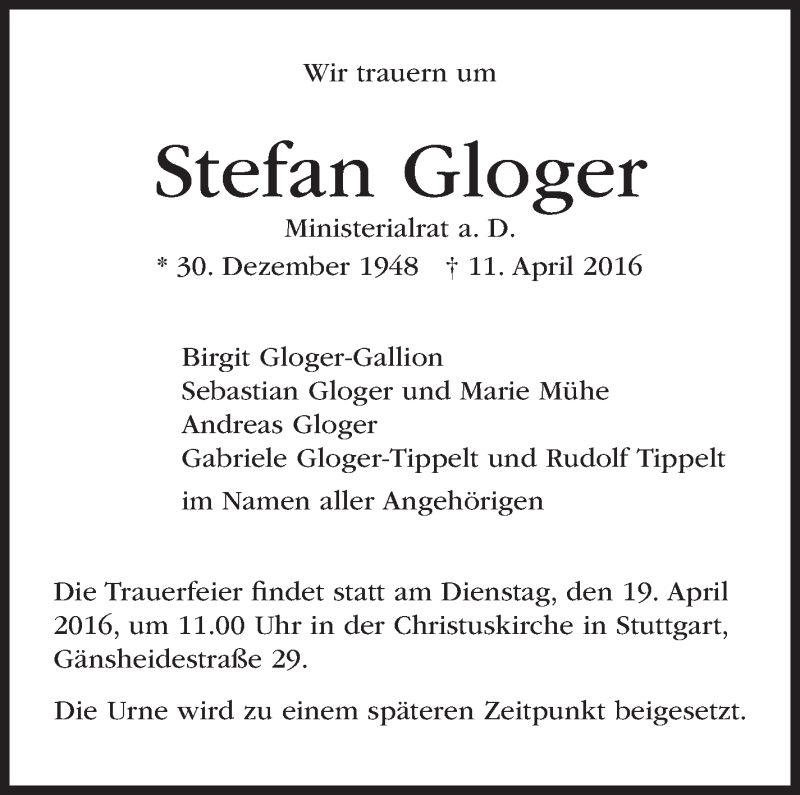 Hier finden Sie alle Traueranzeigen aus der Zeitung, die bisher für Stefan Gloger erschienen sind. Weitere Traueranzeigen, die in der Zeitung erscheinen, werden hier ebenfalls aufgelistet