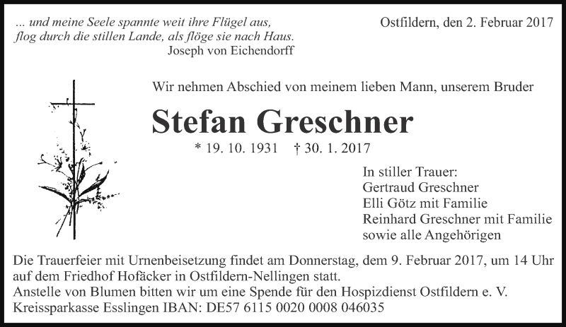 Hier finden Sie alle Traueranzeigen aus der Zeitung, die bisher für Stefan Greschner erschienen sind. Weitere Traueranzeigen, die in der Zeitung erscheinen, werden hier ebenfalls aufgelistet