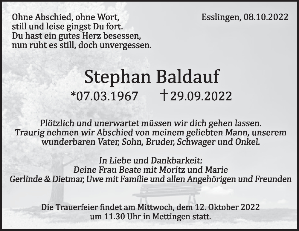 Hier finden Sie alle Traueranzeigen aus der Zeitung, die bisher für Stephan Baldauf erschienen sind. Weitere Traueranzeigen, die in der Zeitung erscheinen, werden hier ebenfalls aufgelistet