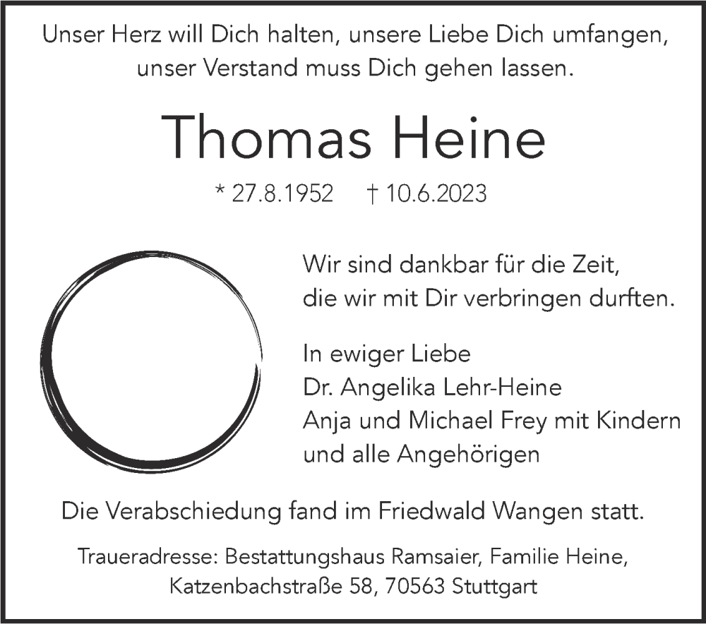 Hier finden Sie alle Traueranzeigen aus der Zeitung, die bisher für Thomas Heine erschienen sind. Weitere Traueranzeigen, die in der Zeitung erscheinen, werden hier ebenfalls aufgelistet