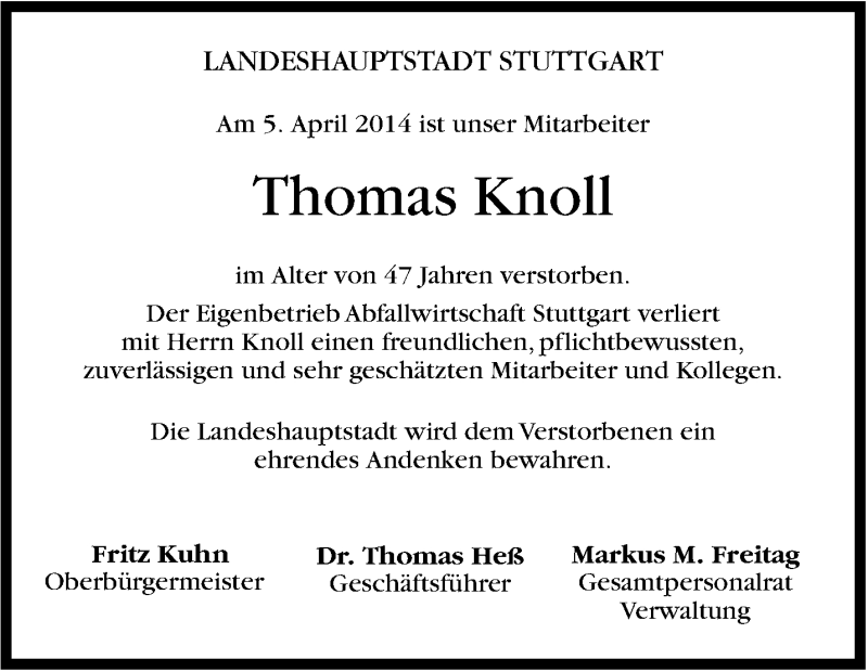 Hier finden Sie alle Traueranzeigen aus der Zeitung, die bisher für Thomas Knoll erschienen sind. Weitere Traueranzeigen, die in der Zeitung erscheinen, werden hier ebenfalls aufgelistet