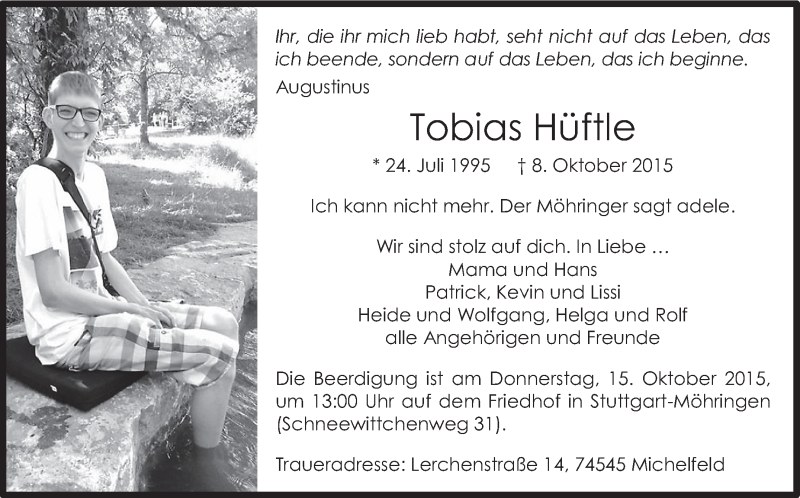 Hier finden Sie alle Traueranzeigen aus der Zeitung, die bisher für Tobias Hüftle erschienen sind. Weitere Traueranzeigen, die in der Zeitung erscheinen, werden hier ebenfalls aufgelistet