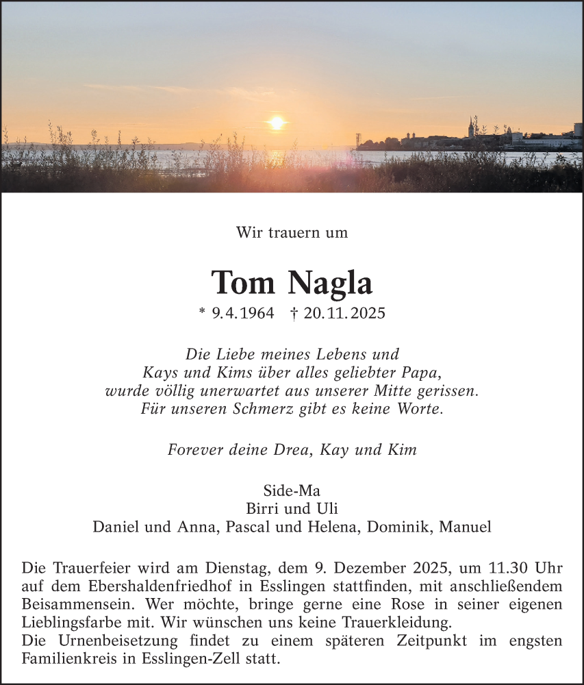 Hier finden Sie alle Traueranzeigen aus der Zeitung, die bisher für Tom Nagla erschienen sind. Weitere Traueranzeigen, die in der Zeitung erscheinen, werden hier ebenfalls aufgelistet