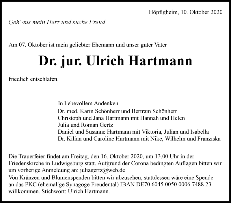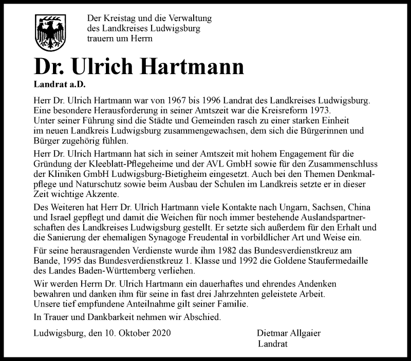 Hier finden Sie alle Traueranzeigen aus der Zeitung, die bisher für Ulrich Hartmann erschienen sind. Weitere Traueranzeigen, die in der Zeitung erscheinen, werden hier ebenfalls aufgelistet