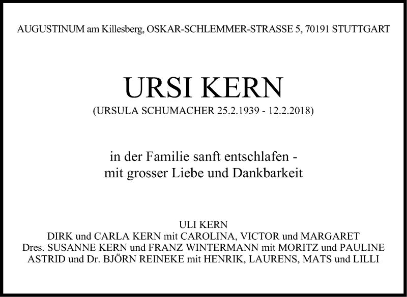 Hier finden Sie alle Traueranzeigen aus der Zeitung, die bisher für Ursula Kern erschienen sind. Weitere Traueranzeigen, die in der Zeitung erscheinen, werden hier ebenfalls aufgelistet