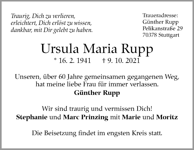 Hier finden Sie alle Traueranzeigen aus der Zeitung, die bisher für Ursula Maria Rupp erschienen sind. Weitere Traueranzeigen, die in der Zeitung erscheinen, werden hier ebenfalls aufgelistet