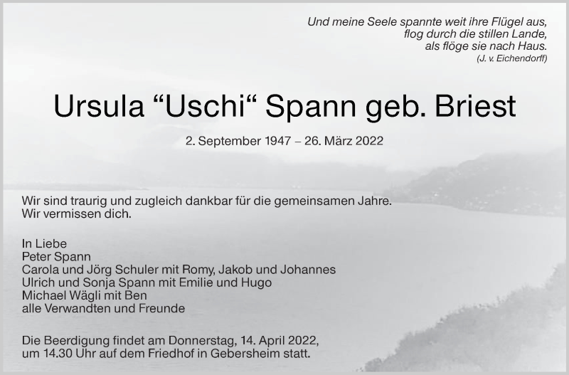 Hier finden Sie alle Traueranzeigen aus der Zeitung, die bisher für Ursula Spann erschienen sind. Weitere Traueranzeigen, die in der Zeitung erscheinen, werden hier ebenfalls aufgelistet