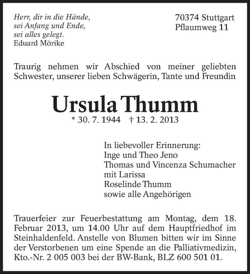 Hier finden Sie alle Traueranzeigen aus der Zeitung, die bisher für Ursula Thumm erschienen sind. Weitere Traueranzeigen, die in der Zeitung erscheinen, werden hier ebenfalls aufgelistet