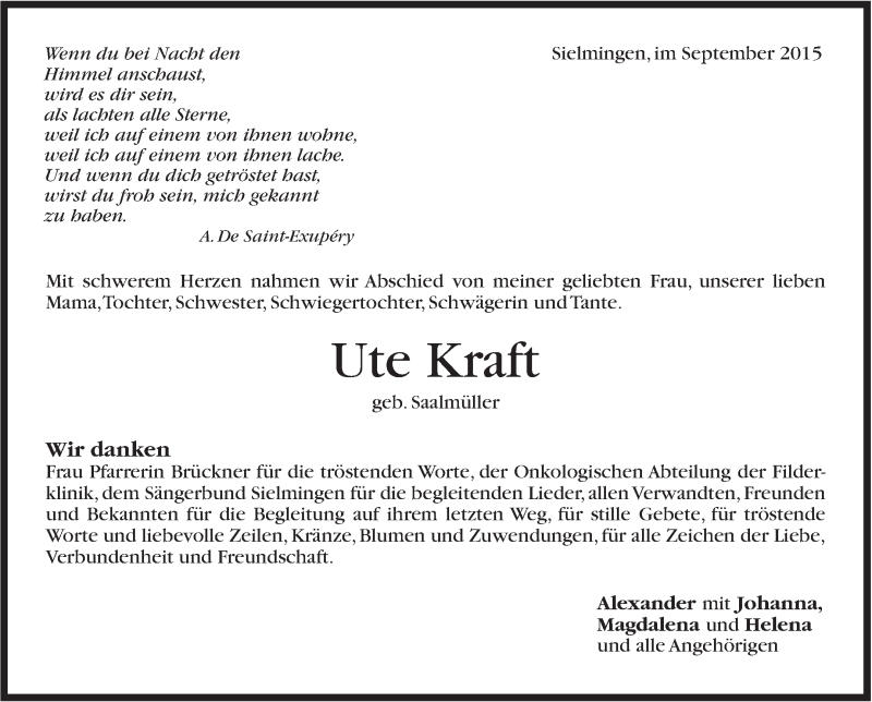 Hier finden Sie alle Traueranzeigen aus der Zeitung, die bisher für Ute Kraft erschienen sind. Weitere Traueranzeigen, die in der Zeitung erscheinen, werden hier ebenfalls aufgelistet