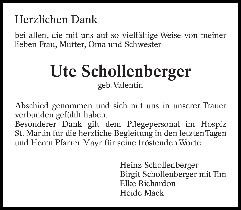 Hier finden Sie alle Traueranzeigen aus der Zeitung, die bisher für Ute Schollenberger erschienen sind. Weitere Traueranzeigen, die in der Zeitung erscheinen, werden hier ebenfalls aufgelistet