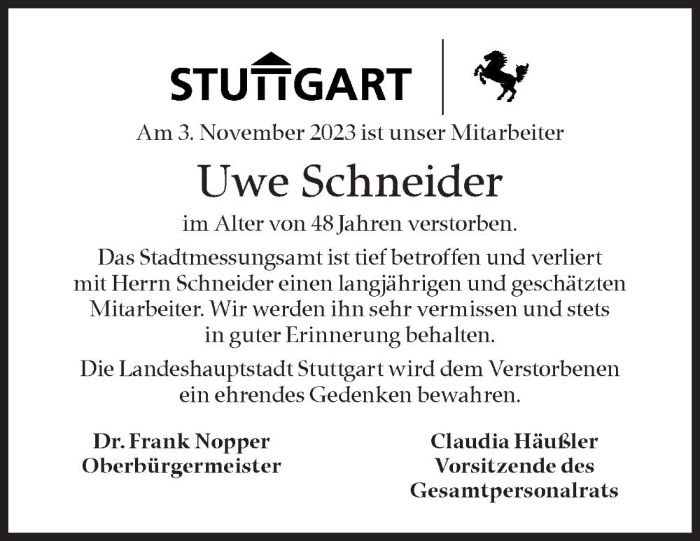 Hier finden Sie alle Traueranzeigen aus der Zeitung, die bisher für Uwe Schneider erschienen sind. Weitere Traueranzeigen, die in der Zeitung erscheinen, werden hier ebenfalls aufgelistet