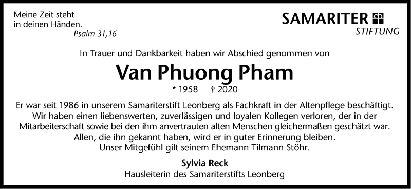 Hier finden Sie alle Traueranzeigen aus der Zeitung, die bisher für Van Phuong Pham erschienen sind. Weitere Traueranzeigen, die in der Zeitung erscheinen, werden hier ebenfalls aufgelistet