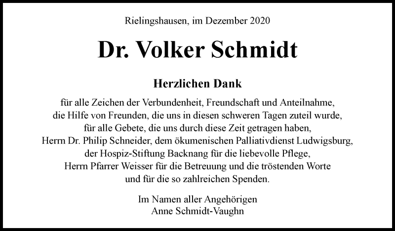 Hier finden Sie alle Traueranzeigen aus der Zeitung, die bisher für Volker Schmidt erschienen sind. Weitere Traueranzeigen, die in der Zeitung erscheinen, werden hier ebenfalls aufgelistet