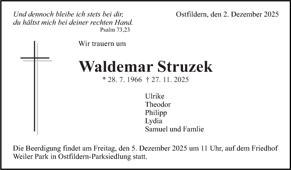 Hier finden Sie alle Traueranzeigen aus der Zeitung, die bisher für Waldemar Struzek erschienen sind. Weitere Traueranzeigen, die in der Zeitung erscheinen, werden hier ebenfalls aufgelistet