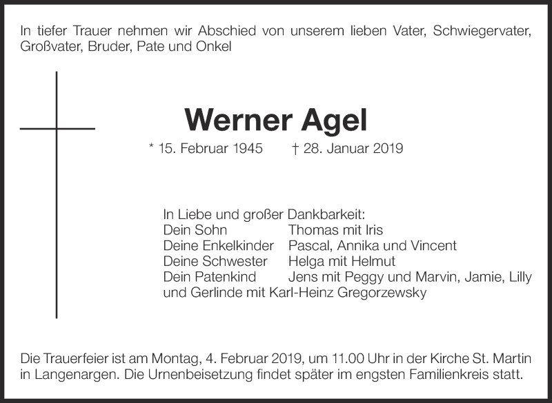Hier finden Sie alle Traueranzeigen aus der Zeitung, die bisher für Werner Agel erschienen sind. Weitere Traueranzeigen, die in der Zeitung erscheinen, werden hier ebenfalls aufgelistet
