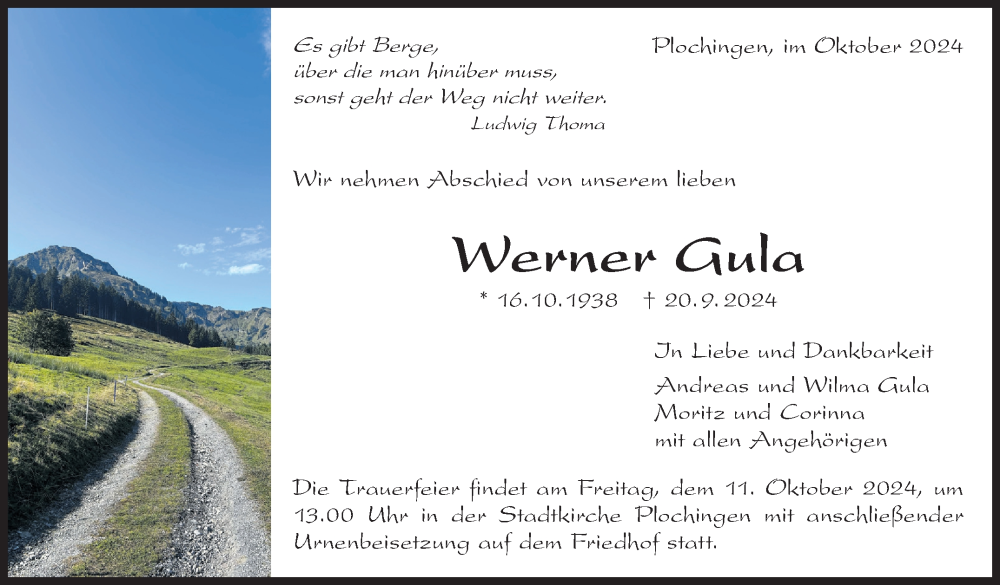 Hier finden Sie alle Traueranzeigen aus der Zeitung, die bisher für Werner Gula erschienen sind. Weitere Traueranzeigen, die in der Zeitung erscheinen, werden hier ebenfalls aufgelistet