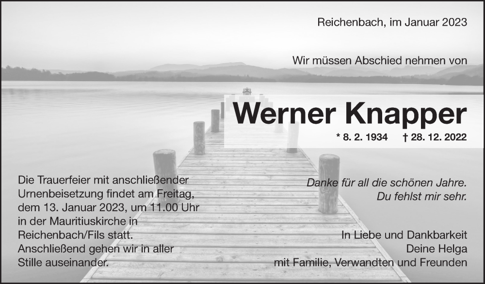 Hier finden Sie alle Traueranzeigen aus der Zeitung, die bisher für Werner Knapper erschienen sind. Weitere Traueranzeigen, die in der Zeitung erscheinen, werden hier ebenfalls aufgelistet