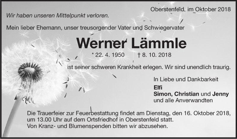 Hier finden Sie alle Traueranzeigen aus der Zeitung, die bisher für Werner Lämmle erschienen sind. Weitere Traueranzeigen, die in der Zeitung erscheinen, werden hier ebenfalls aufgelistet