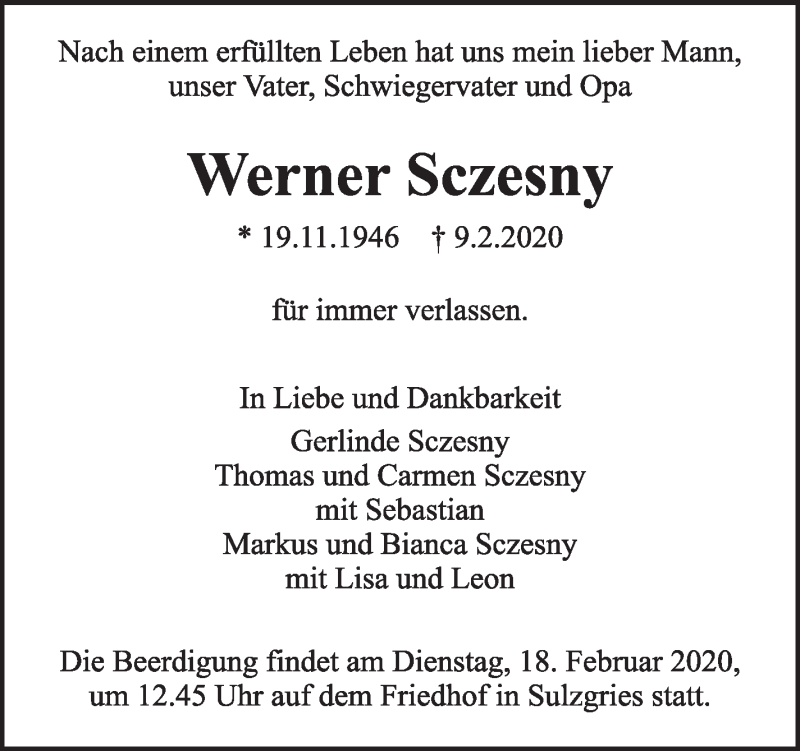 Hier finden Sie alle Traueranzeigen aus der Zeitung, die bisher für Werner Sczesny erschienen sind. Weitere Traueranzeigen, die in der Zeitung erscheinen, werden hier ebenfalls aufgelistet