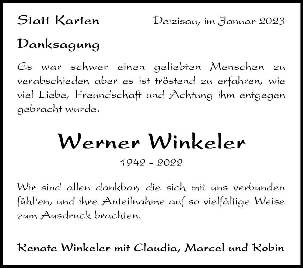 Hier finden Sie alle Traueranzeigen aus der Zeitung, die bisher für Werner Winkeler erschienen sind. Weitere Traueranzeigen, die in der Zeitung erscheinen, werden hier ebenfalls aufgelistet
