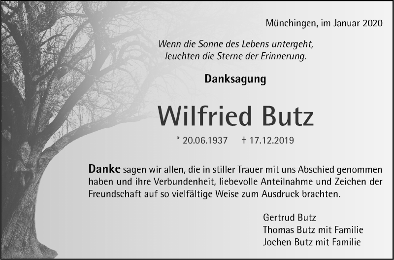 Hier finden Sie alle Traueranzeigen aus der Zeitung, die bisher für Wilfried Butz erschienen sind. Weitere Traueranzeigen, die in der Zeitung erscheinen, werden hier ebenfalls aufgelistet